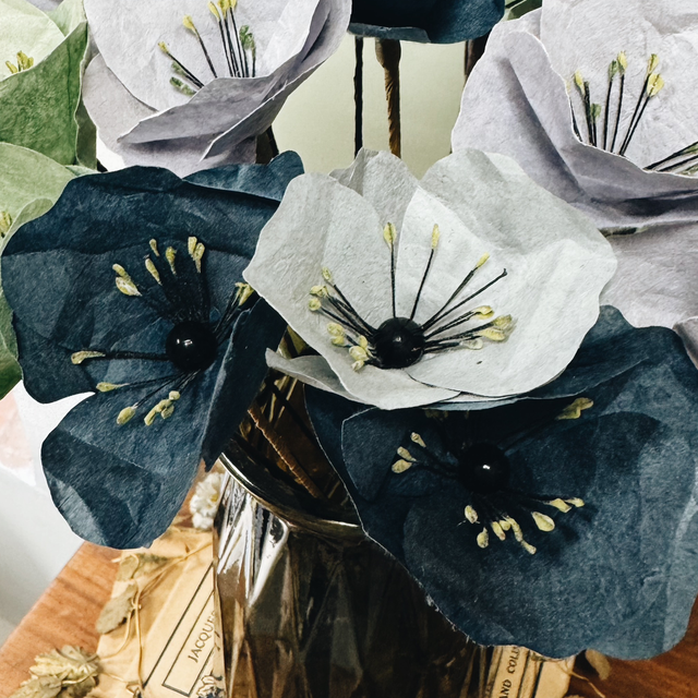 Fleur en Papier – Coquelicot Bleu | Décoration Florale & Artisanat Éthique