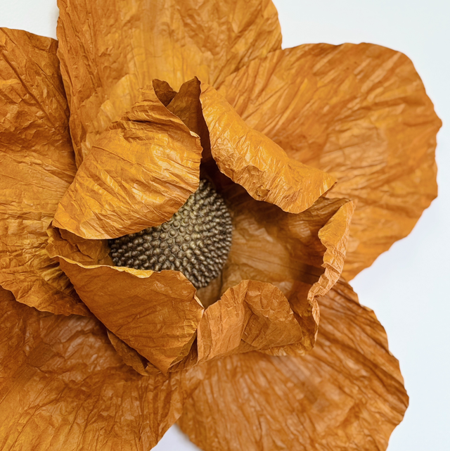 Créée spécialement pour le Salon Fragment et le Salon des Créateurs & Artisans d’Art de Toulouse, cette fleur géante en papier apporte une touche chaleureuse et festive à votre intérieur.