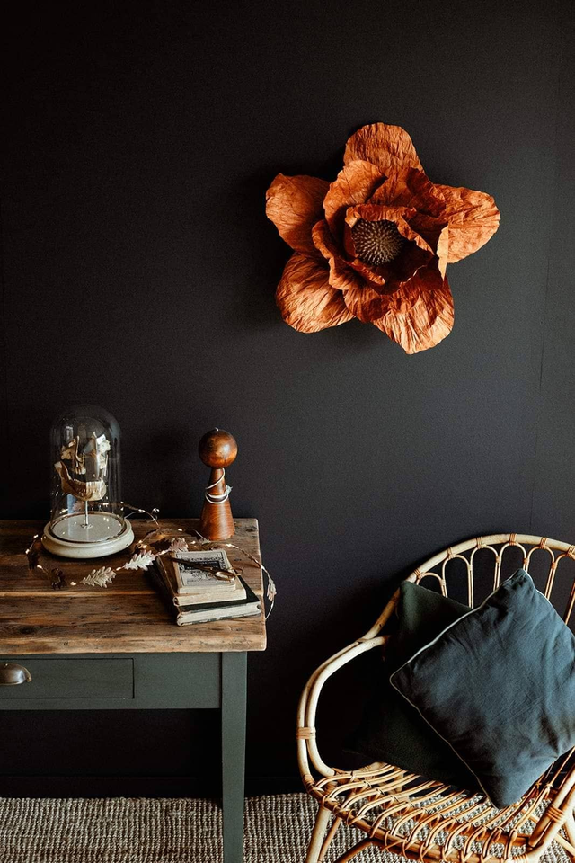 Entièrement réalisée à la main en papier Lokta, cette fleur géante de 60 cm devient une pièce maîtresse dans votre intérieur. Sa légèreté permet une installation très simple : elle se fixe au mur sans trou, grâce à une pastille adhésive, ou se pose sur un meuble pour créer un point focal délicat et poétique.